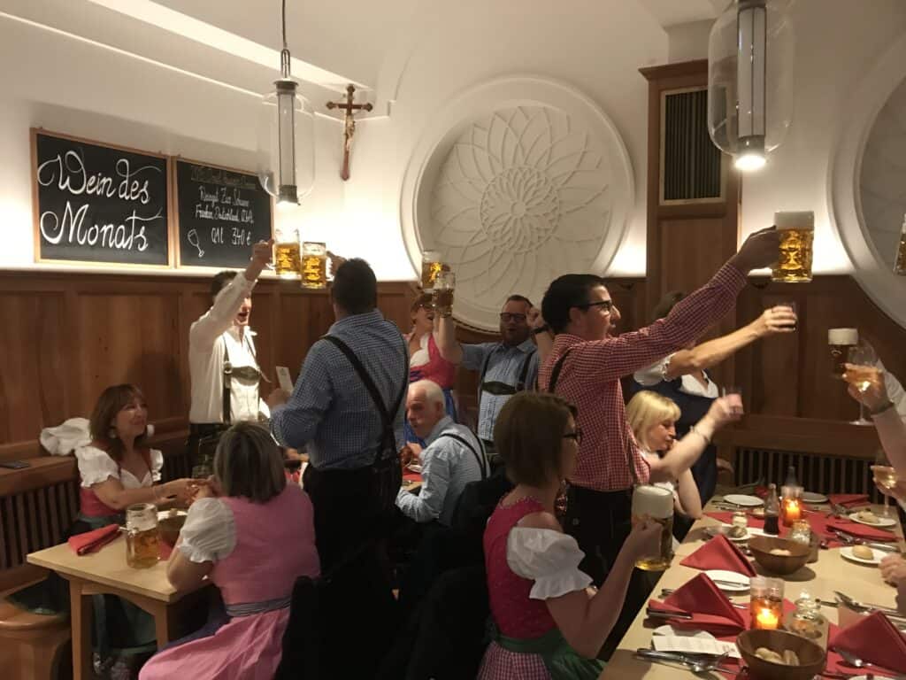 Hoe? We reserveren een grote tafel in één van de typische biertenten en zorgen voor traditionele lederhosen voor de hele groep.